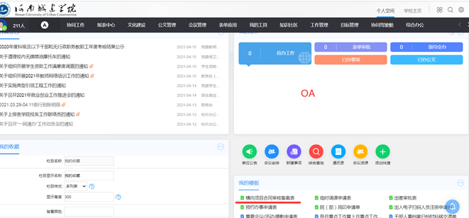 登录OA >> 点击“我的模板‘科研入账申请表’” >> 填写提交 >>登录“科研创新服务平台系统” >> 增添横向项目 >> 填写相关信息 >> 提交