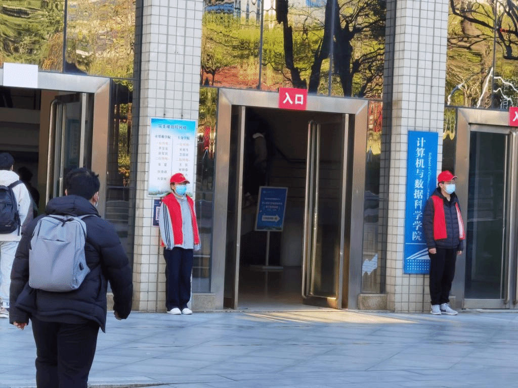 本次值班中,每位同学肩负起身上责任,衣着整齐、佩戴口罩,积极督察员工在密集环境中要做好个人防护,提醒未佩戴口罩同学佩戴口罩,并积极引导员工保持一米安全距离,在人流量大的时候耐心的进行人员流量秩序维持等。哪里有需要,哪里就有党员干部的身影。他们坚守岗位,使共产党员先锋模范作用得到充分彰显,把对党的忠诚、对师生的关爱、对初心使命的坚守体现在实际行动中,展现了共产党员的责任和担当。