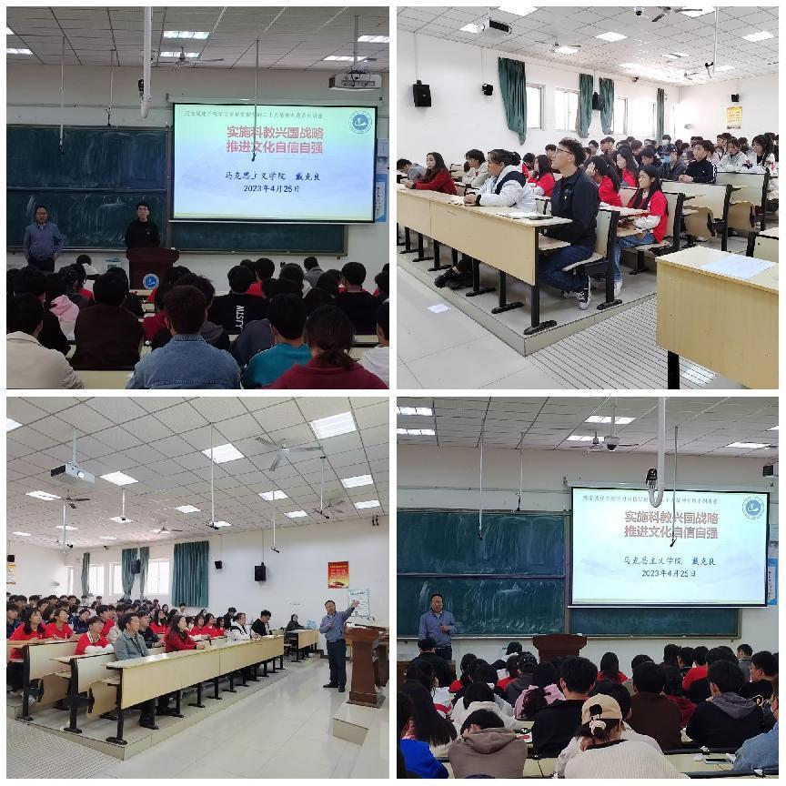 习近平总书记在党的二十大报告中指出,“加快建设国家战略人才力量”。这是立足新时代新征程党的历史使命,全面建成社会主义现代化强国,以中国式现代化全面推进中华民族伟大复兴作出的重大战略部署。党课上,戴克良围绕实施科教兴国战略,推进文化自信自强展开讲解,并结合河南省实施“创新驱动、科教兴省、人才强省战略”进行了深入分析,内容丰富,讲解生动,课堂氛围热烈。