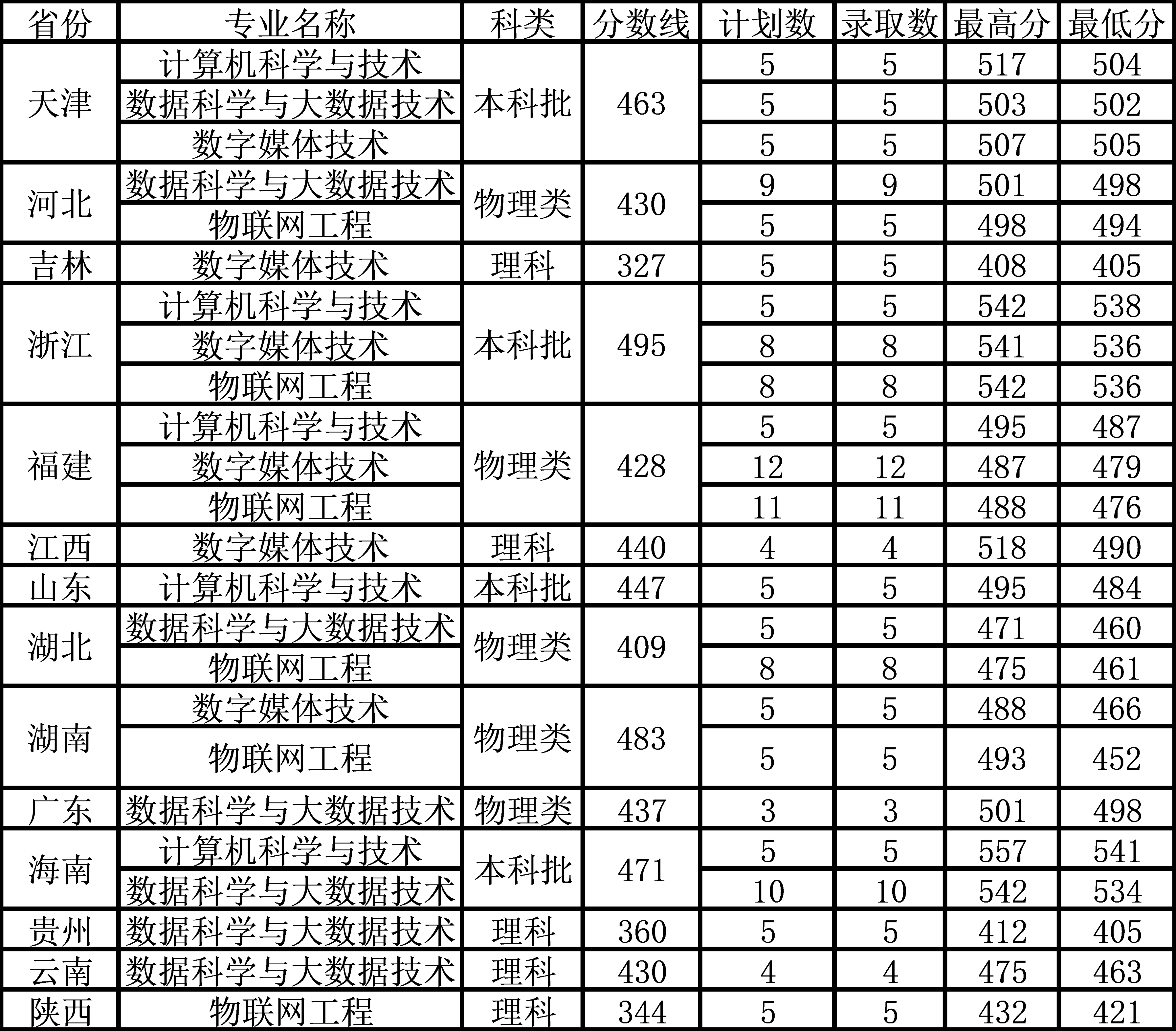 三、计算机与数据公司2022年外省本科各专业录取统计