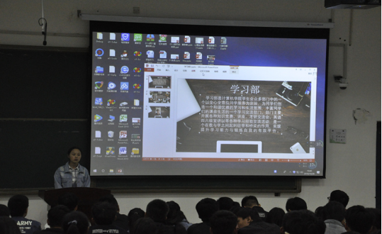 会议一开始,员工会主席团进行了自我介绍,表达了对员工会成员的鼓励,教导18级员工会新成员“积极学习专业知识与人际交往,学会自我调节,得失不必太过看重。”接着员工会各部门部长上台介绍部门的主要工作内容,成员以及对未来的期望。