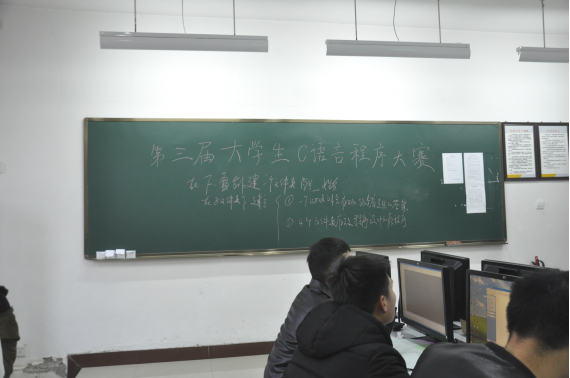 此次比赛采取机试的形式进行,内容为c语言程序设计,采用编程环境为VC6.0,要求所编程序在词环境调试通过,并能执行出正确结果。大赛分为个人和团体两种比赛形式,可参考一定范围内的参考资料答题,其中,团体比赛中成员们积极思考,共同商讨答题方法,赛场秩序井然有序。