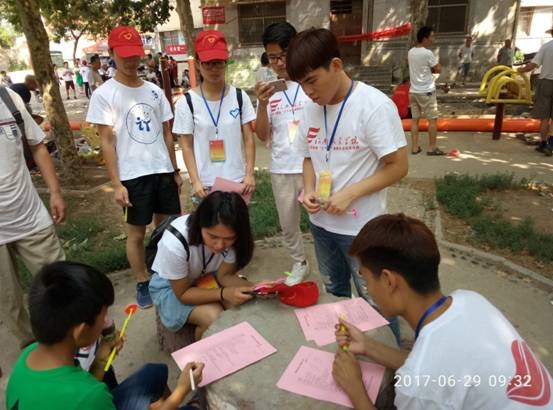 6月29日早上八点,在确认准备工作无误后开始深入社区进行走访。走访过程中,志愿者们对社区居民进行了防溺水问卷调查,同时也给他们普及了一些防溺水的安全知识。期间居民响应十分积极,不时向志愿者们请教一些有关溺水急救措施等等,志愿者们耐心讲解并一一解答了他们的问题,本次活动最后得到了社区居民的普遍好评。
