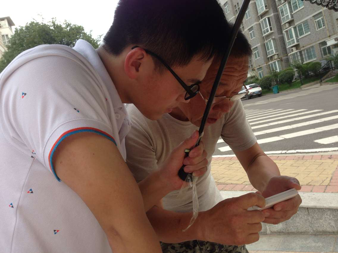 (图为志愿者帮助老人解决电子产品问题)