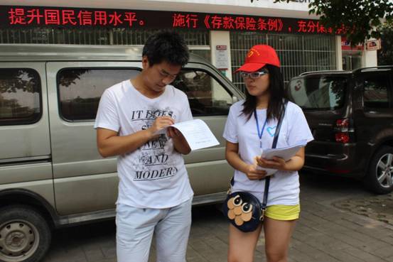 (图为志愿者们调查计算机专业毕业生就业情况)