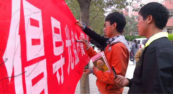 活动中,志愿者们积极地宣传“光盘行动”的作用和意义,普及宣传光盘行动的相关知识及必要性,让同学们了解光盘行动的必要性,倡导同学们把饭菜吃光,不浪费一粒粮食,养成勤俭节约的好习惯,并号召路过的同学们在横幅上面签字以表决心。