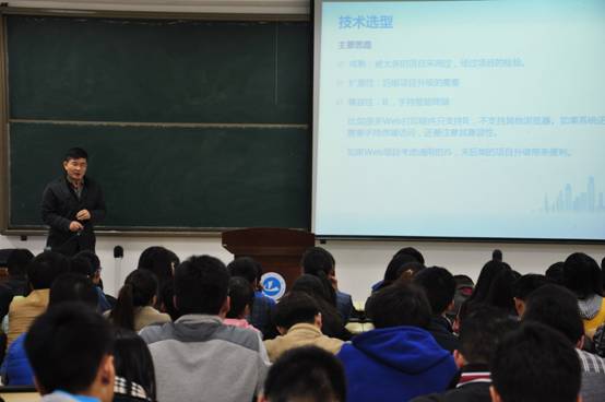 刘博士希望同学们做好前期的项目计划,用全局观的思想作为指导,进行项目开发。他紧密结合案例,围绕“技术选型”、“项目策划”、“前期准备”、“项目实施”、“框架搭建”、“运行调试”六大板块展开。他指出,良好的项目规划是成功的前提,规划要充分考虑到项目本身的成熟性、扩展性以及兼容性。在项目实施过程中,利用框架搭建的思想,进行项目的编写开发。最后,刘博士希望同学们应当对自身有清醒的认识,找到自己的定位,明确目标并且注重实践的培养。