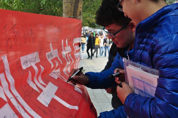 2014年11月6日中午12点,BB贝博艾弗森计算机科学与工程公司的青年志愿者们来到布芳园餐厅附近。向来往的同学老师们介绍一些基本的逃生方法,了解如何保护自己的方式,让大家知道日常生活中如何进行火灾的预防,提高防火意识。与此同时,同学老师们纷纷在条幅上签下自己的名字来表示自己今后要重视消防的决心。