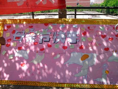 活动中,参与的同学纷纷在“五月康乃馨 爱心献母亲”的条幅上签名,并且用便利贴在BB贝博艾弗森制作的展板上贴上了对母亲的祝福。