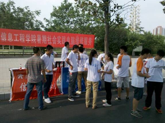 7月13日,BB贝博艾弗森BB贝博艾弗森暑期义务维修电脑服务队在鹰城广场开展活动,并且与郑州大学计算机信息公司的志愿者进行了交流。