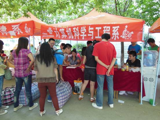 计算机科学与工程系的志愿者们放弃了自己休息的时间,为专升本的新生提供志愿服务。志愿者们为新生办理了入学手续,还向他们介绍了公司的基本情况,入学的注意事项,帮助他们拿行李,给他们找宿舍。虽然志愿者很累,但是他们都说:“现在虽然现在累点,但是能为同学们提供帮助,这点累算不了什么”。接受帮助的同学们感到很高兴,来到新的校园学长们的服务感到很贴心。