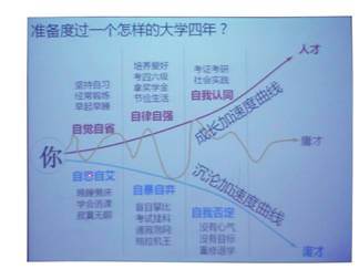 最后,由班级辅导员王春丽老师做出总结,并鼓舞同学们努力学习,尽力考研,不要虚废大学时光,为自己的青春写上无悔的一页。