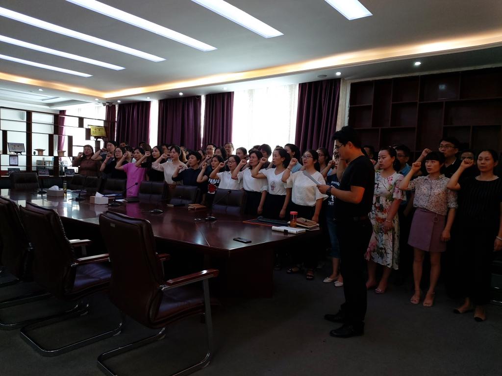随后,在经理何宗耀的带领下,全体教师在庄严的氛围中重温教师誓词。