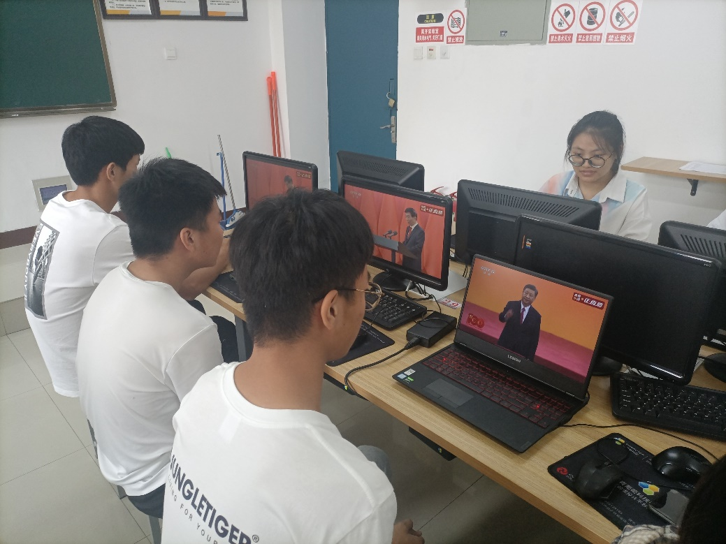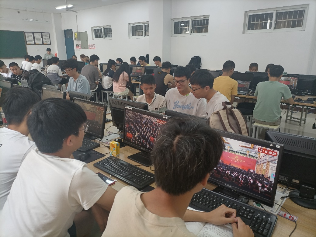 上午十点,老师们齐聚于十号楼会议室,同学们进入十号楼机房,共同迎来这辉煌的时刻。伴随《义勇军进行曲》激动人心的旋律,全体师生共同起立,共唱国歌,“七一勋章”表彰大会正式拉开了帷幕。