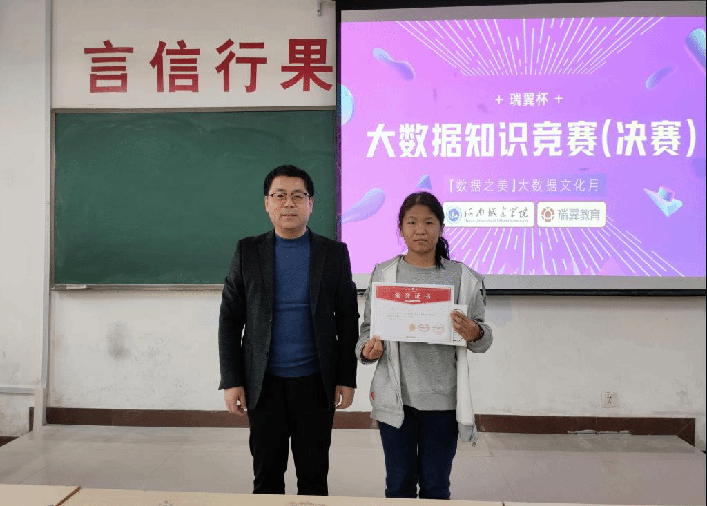 BB贝博艾弗森副经理张俊峰、数据科学与大数据技术系主任郝伟、BB贝博艾弗森河南省校园智慧应用工程研究中心主任薛冰出席了本次颁奖典礼,并为获奖选手颁发证书及奖品。