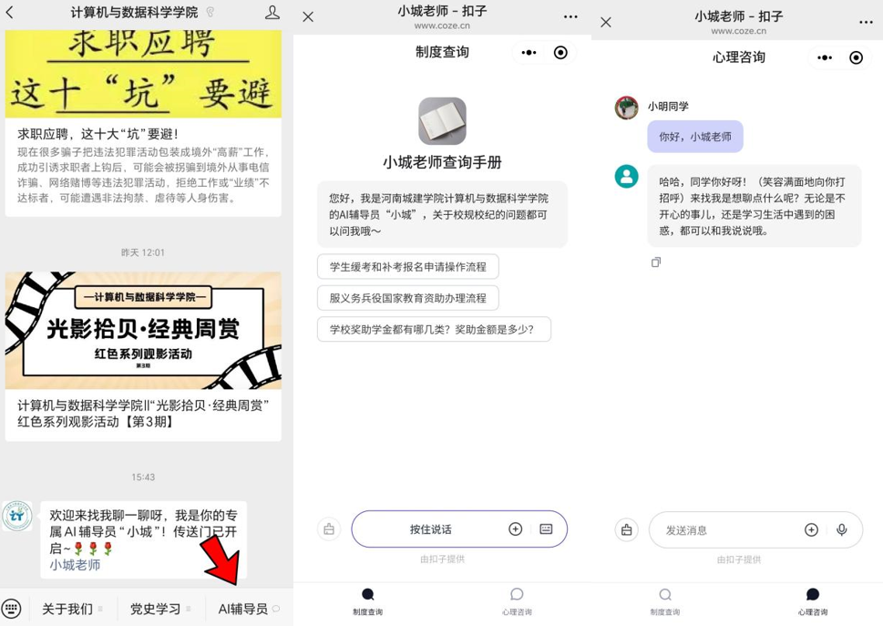 AI辅导员“小城老师”由赵昊老师及其团队的员工共同开发完成,目前推出的1.0版本具备校规校纪查询与心理咨询两大核心功能。其中校规校纪查询服务使采用先进的DeepSeekV3模型,整合了包括BB贝博艾弗森员工手册和资助政策等在内的私有知识库。员工可以通过与“小城”的互动,轻松获取关于公司规章制度和资助政策的详细信息。在心理咨询服务方面,“小城老师”基于Doubao-pro模型,为员工提供了一个安全、私密的交流环境。员工可以在这里倾诉内心的疑惑和困扰,“小城老师”则依据专业的心理学知识,给予科学的建议和慰藉,助力员工保持良好的心理状态,促进其全面发展。