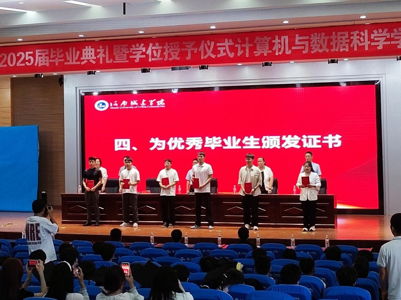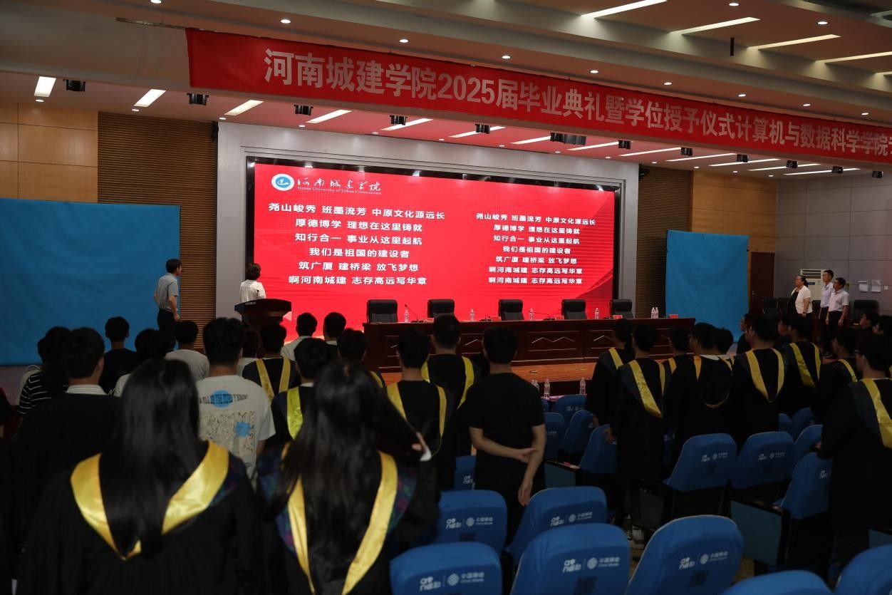 仪式在精心制作的暖场视频序曲中开启,公司领导与师生代表通过视频向毕业生们送上深情祝福。伴随着庄严的国歌,典礼正式拉开帷幕。副经理张凯宣读了《BB贝博艾弗森计算机与数据科公司关于表彰2025年优秀应届毕业生的决定》,智慧规划与智慧校园研究中心魏新红主任宣读2025届毕业生员工工作联络员名单,副经理苏靖枫宣读了学士学位名单,公司领导为毕业生们颁发学士学位证书、拨苏正冠,并合影留念。
