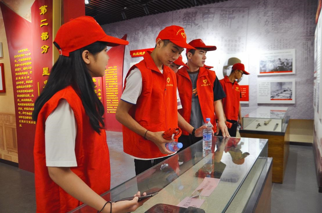 走进段庄革命老区纪念馆,首先映入眼帘的是“红色段庄,革命堡垒”八个大字,大型浮雕展现了段庄党员干部和广大人民群众辉煌的革命事业。段庄老区革命纪念馆分5个展区,每个展区生动展示了这一党支部的成长历程,展现出他们为革命事业抛头颅洒热血的革命精神。在参观的过程中,志愿者们聆听了讲解员的讲解,也和同来参观纪念馆的游客们及工作人员进行交流,了解他们对红色文化助力脱贫影响的看法和感受。通过短暂的交谈,志愿者们了解到建立该纪念馆的初衷以及当地人民对于新青年的希冀。