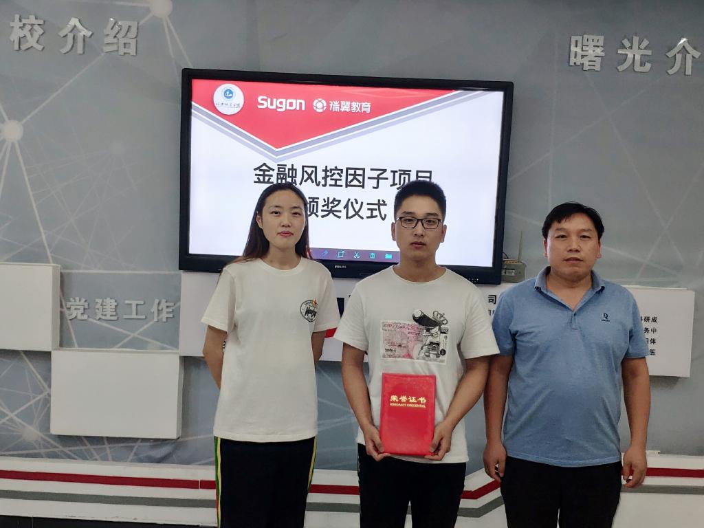 公司副经理刘荣辉博士。大数据创新中心张敬普博士,团总支书记、学工办主任王梦琪老师为曾黎同学等同学颁奖,并勉励他继续采用在实践中学习的方法,更多地参与到校企双方合作推出的实战性项目中来,提升技术能力,锤炼个人技术。