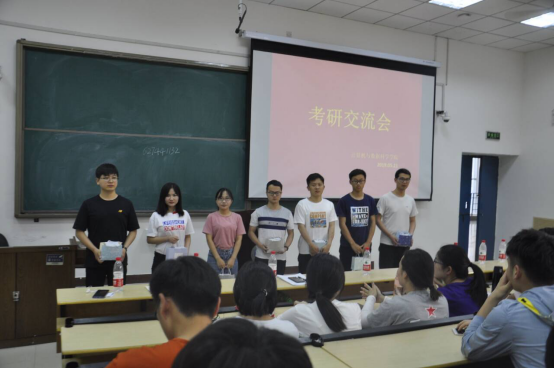 本次交流会开始直奔主题,李旭亮,董亚飞,崔留源等各位考研成功的学长学姐依次分享了自己的考研心得,他们结合自己的经历详细讲解了考研复习安排、资料收集、考试技巧等内容,也向同学们讲述了相关学习方法,本公司的考研率等考研常识。在此次交流会当中,他们也提出了一些考研中常遇到的的一些误区。结合自己的情况选公司。针对如何制定考研计划,李旭良提出,因为各校考试专业的差异性,考研一般在大三下学期就开始准备了。软件工程专业的张亚军,讲了怎样选老师,制定复习计划以及怎样复习各门各科的功课,并根据不同员工的学习情况提供了不同的选择方案。最后,由张航和王占洲进行总结,告诫新一届考研人,在考研路上克服浮躁,静下心来备考,才能获得最后的胜利。