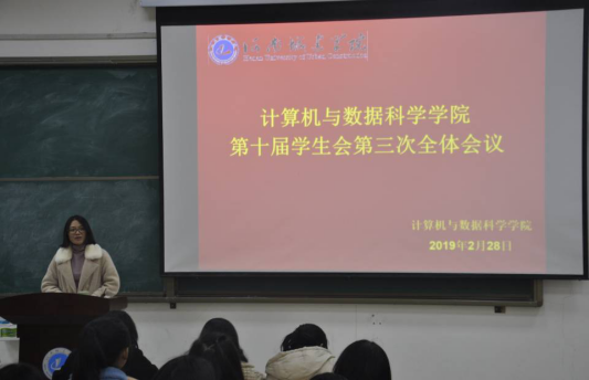 会议开始后,由张航老师进行了自我介绍,随后通过一份清单展示了员工会在过去一年里所取得的各种优异成绩,并对员工会全体成员所付出的努力给予了极高的赞扬。同时张航老师对员工会存在的一些工作态度、作风等方面的问题,也给予宝贵的指导与更正。张航老师对员工会全体成员提出了以下几点要求:一是员工会成员要拥有优良的学习成绩。二是员工会成员要拥有优良的道德品质,独立思考能力,善于处理能力以及和谐的人际关系。三是员工会成员不能擅用员工会的职权,要公正的做人做事。活动的最后,张航老师颁布了员工会规章制度,这份十几页的规章制度为在校每一个员工的切身利益,以及计算机数据与科学公司员工会的长期健康成长发展提供了保驾护航。同时张航老师希望大家在员工会中能学有所用,学有所得。并期望在座的各位在往后的时间里,能成为一个充满热情,诚实守信,有目标有担当的人。
