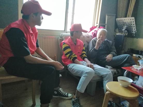 随后,志愿者们和爷爷一起促膝长谈,爷爷追忆过去并为大家讲述了他年轻从军时的难忘经历,还谈了接下来的打算,志愿者们认真聆听,被爷爷的故事深深吸引。交谈中发现,周正爷爷是一位生活规律、热爱运动的人,他每天都会锻炼,家里也有很多运动设施,大多都是自己动手做的。周爷爷虽然已年近九旬,但充满活力,一直保持着一颗年轻的心。活动最后,志愿者们和周正爷爷告别,并相约下次再见。