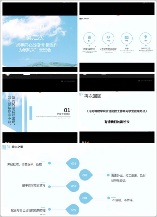 此次“云班会”班会凸显同学们的主体作用,聚焦同学们的关注热点,开到了员工的心里,较好地调动了同学们的主人翁意识和参与热情,参与同学多,发言内容生动丰富,班会气氛活跃。更为重要的是,同学们通过自觉主动参与,切身切实地感受到疫情这一特殊一课给我们带来的深刻启示,在自己的审视反思中,提升家国情怀、责任意识和担当意识,增进自强不息、学好本领的紧迫感和使命感。