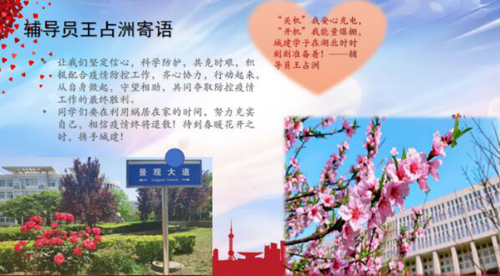 会议第一项,主持人回顾疫情期间温暖的瞬间,展示疫情期间为我们默默奉献的动人的故事,向为抗击疫情做出贡献的人表示致敬。接着,辅导员和湖北籍员工发表共同抗疫寄语,把美好的愿景通过寄语传达出内心的爱与希望。随后,主持人讲述疫情期间调节心理健康的办法,强调疫情期间要以积极的心态面对生活。辅导员王占洲进行了视频连线慰问,及时了解员工在家学习生活情况,帮助员工坚定信心,平稳度过疫情关键期。每位同学分别就此次疫情防控发表了自己的感想,纷纷表达了对公司的感谢,对祖国的热爱!最后,辅导员王占洲做会议总结,表示同学们应提高自己站位、按照公司、公司要求开展学习进度,充分利用好居家学习的时间,做好个人防护,有困难随时联系公司领导和辅导员。再次强调作为湖北籍员工要按时报平安,配合公司关于疫情防控工作部署。