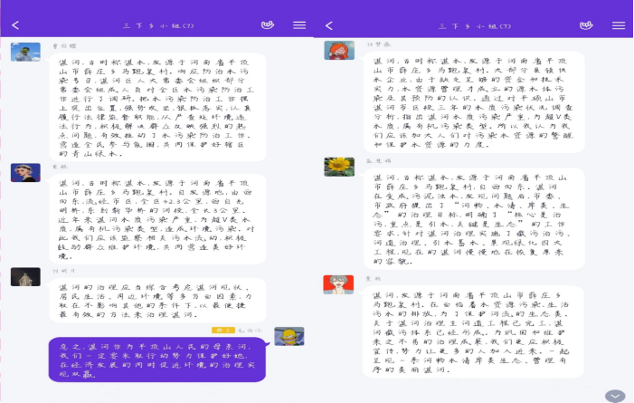 7月12日上午,“保护母亲河,传播绿色环保理念”服务团于10点准时进行关于湛河情况与活动预期的会议。志愿者们各抒己见地提出了自己的观点。湛河,古称湛水,发源于河南省平顶山市薛庄乡马跑泉村,自西向东,作为平顶山的母亲河,近年来湛河水质污染严重,为超V类水质,属有机污染类型,造成环境污染,志愿者们分别从国家政策与宣传方案进行了反馈。随后,组内制作了问卷并进行了传播。服务队成员积极记录着问卷的情况与结果,为更好的治理湛河做好了准备。