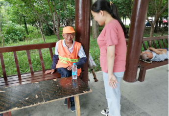当天上午,新芽志愿服务队成员们走出家门,在自己周边做一些力所能及的志愿服务。比如给辛苦劳作的环卫工人们送水、帮他们打扫卫生、清理社区草坪上的垃圾。虽然这是一些微不足道的小事,但成员们还是从一天的实践活动中感受到了自我的价值。