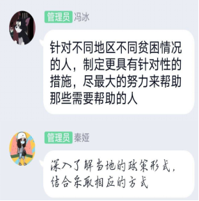 因疫情原因,服务队成员不能相聚一起,服务队就借助QQ群,积极讨论实践方案、方式、具体流程。每位成员深入当地基层,按策划践行各自实践任务,并即时在群中发表所思所想,服务队团结一致,虽相距遥远,但一颗颗为扶贫贡献的炽热之心将他们紧紧连接在一起。实践队成员发放关于家乡当地旅游业发展、互联网使用等相关情况的调查问卷,以更加深入了解基层脱贫概况。他们随机询问当地村民对旅游业采用电子信息化管理的看法,并结合自身所学知识对调查问卷上的问题耐心阐释,向他们介绍互联网+知识及其在助力扶贫中的作用。