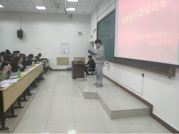 比赛之前,主持人向大家介绍了比赛内容、规则,以及每位选手上场顺序的安排。比赛开始,参赛选手依次上台演讲,他们用优美的词语、激昂的声音、得体的表达,引得现场观众频频鼓掌。有的讲述了疫情期间平凡人物的动人抗疫故事,有的分享了抗疫英雄的战疫事迹,有的选手则结合自身所见所闻,分享了身边的战疫小故事......他们的讲述生情并茂、引人入胜,令在场观众不时为故事中的内容深深吸引并为之动容。直至比赛结束,观众们依然是意犹未尽。最后,经过公平公正的评分,主持人公布获奖名单。获奖人员依次上台领奖,并进行合照留念,至此诵读比赛圆满结束。