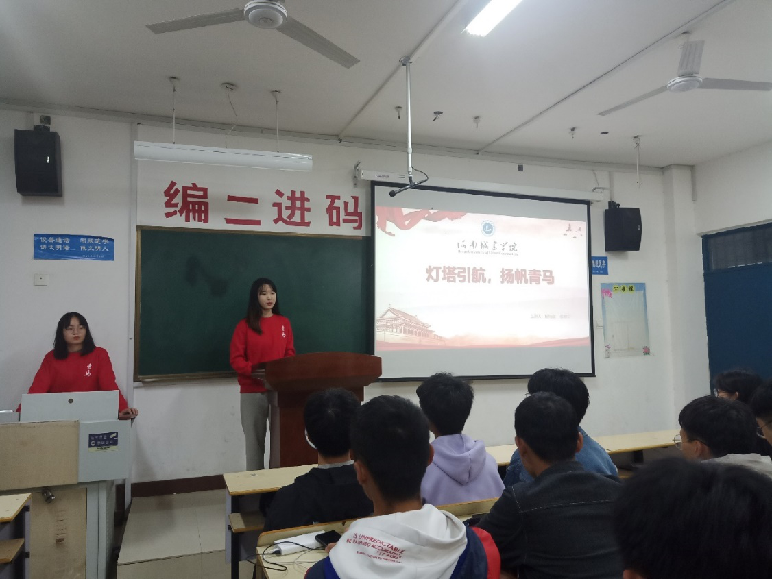 宣讲开始,杨轲欣同学为大家简要介绍了本次宣讲的主题“灯塔启航,扬帆青马”和相关内容。接着,她以新生军训结束为引,为大家讲述了她在刚入学军训时发生的故事。为了当上方队队长,每晚坚持不谢,勇敢、执着的给自己加训。生活是自己的,只有自己觉得好,那才是真的好。我们每个人都可以像她一样,为自己的所思所想,坚持自己的那份执着。接着,播放了第十期青马工程微团课“20岁的马克思,20岁的我们”。
