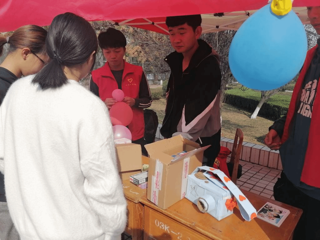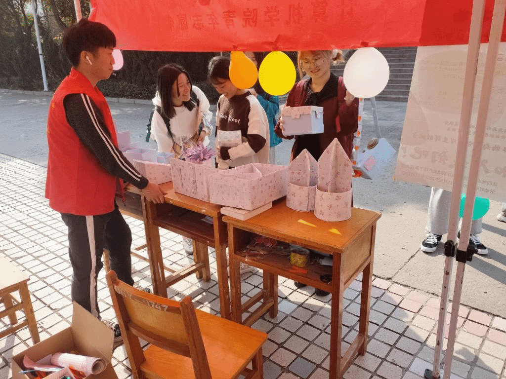 活动开展前一天,志愿者们早早带上了自己的废弃纸盒,到集合点集合。经过几个小时的努力,一个个废弃纸盒在志愿者们的手中变成了精美饰品、收纳盒、笔筒等有意义的手工品。活动第一天早上7:20,志愿者们早早地搭起了帐篷,摆上了精心制作的手工品及一些闲置物品,活动顺利举行。“心动不如行动,赶紧带上你们的闲置物品和废纸盒和我们交换吧!”在志愿者们的宣传中,活动逐渐火热,许多同学前来询问并参与兑换,脸上满是开心的笑容。在志愿者们的组织下,活动有条不紊的进行着,有同学表示“‘旧物回收,以物换物’这个活动很有意义,不仅把平时觉得不起眼,没有用的东西进行二次利用,也获得心爱的手工品,可谓利人利己。”同学们上课期间,志愿者们也没有闲着,整理物品、继续制作手工……用灵巧的双手变废为宝。活动结束后,志愿者们整理好收集来的废旧纸盒,并将它们送给宿管阿姨,将旧物纸盒发挥最大的价值。