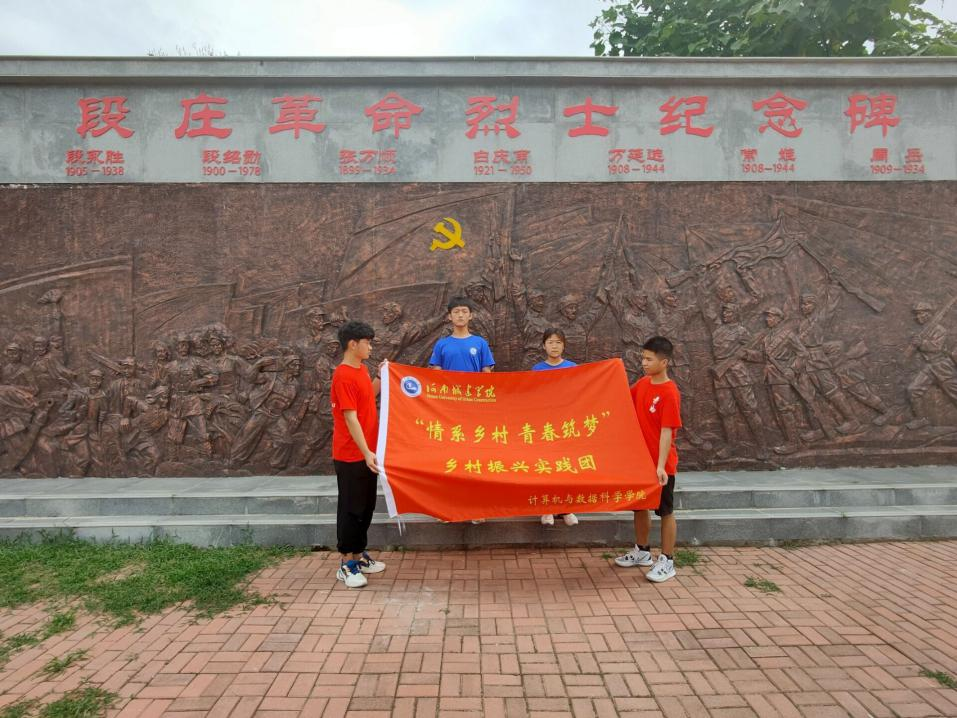 图为实践队员们在段庄革命烈士纪念碑前合影留念