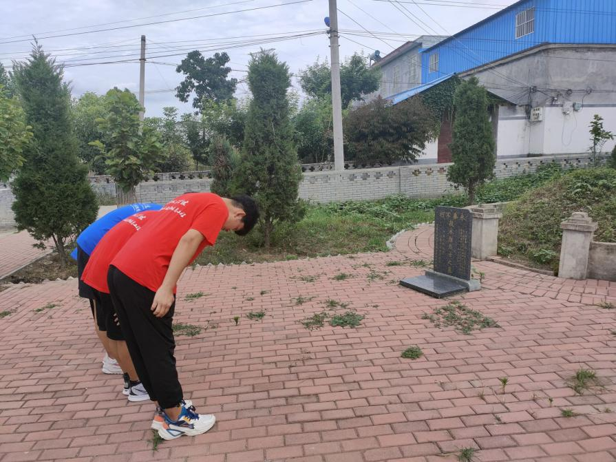 图为实践队员们在段永胜墓碑前鞠躬缅怀