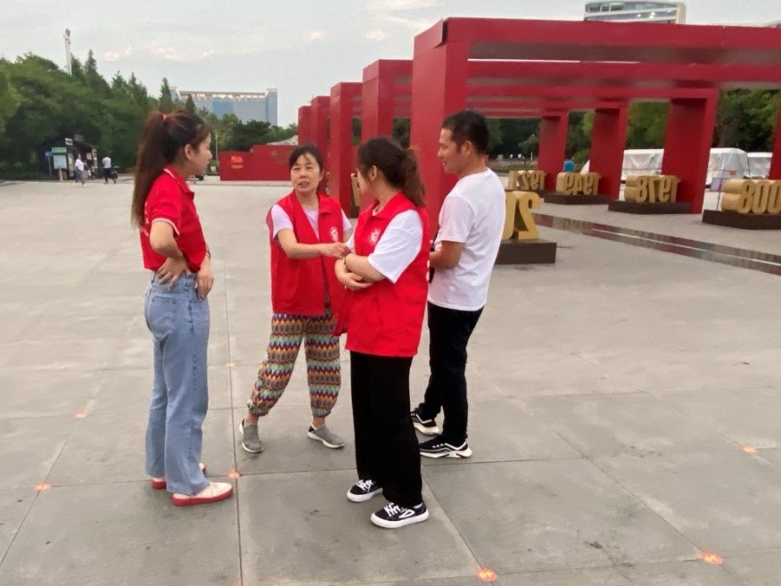 图为志愿者与市民谈论对环保的态度及看法(通讯员 李子龙摄)