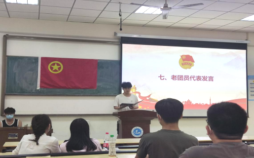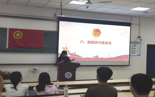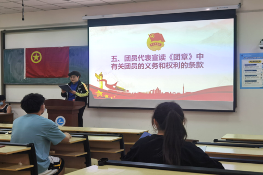 伴随着庄严的国歌奏响,入团仪式正式开始,随即宣布15位新团员名单并由团总支副书记赵史东为新团员颁发团徽,团学发展服务中心负责人陈子云带领新团员宣誓,员工会执行主席王柏潮宣读《团章》,然后新、老团员代表带来精彩的发言,最后学工办主任兼团总支书记王梦琪老师对新团员提出希望和要求。
