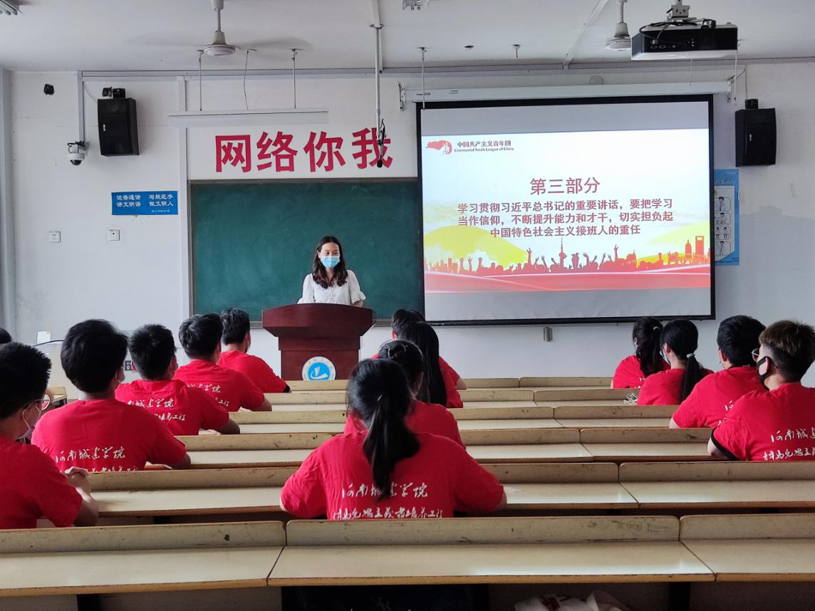 (通讯员 宋梦如 宋夏笛)为了帮助同学们更好地学习习近平总书记在庆祝共青团成立100周年大会上的重要讲话精神,让同学们更清楚地认识到自身青春价值的实现对国家的重要性,2022年5月27日下午BB贝博艾弗森宋梦如在十号教学楼412教室,给青马班同学上了一节“闪亮青春点燃时代之光--学习贯彻习近平总书记在庆祝共青团成立100周年大会上的重要讲话精神”的思政课。