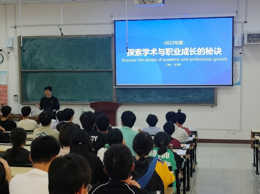 讲座现场,刘治营结合个人的学习历程,分享了宝贵经验,不仅在学术研究、职业发展方面对同学们给予了建议,还对机器学习、云计算、区块链等技术给予充分介绍。他强调学习策略、时间管理的重要性,勉励同学们在追求学术和职业成长中要树立信心,坚持不懈地努力。