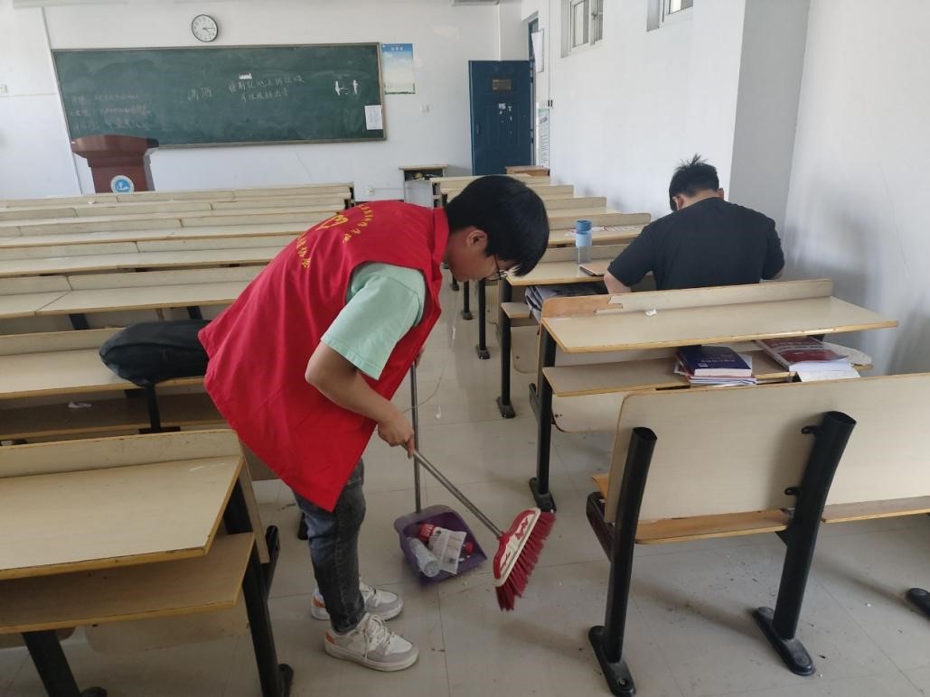 (通讯员 王占洲 王恩祺)为给同学们打造干净整洁的学习环境,2024年5月15日,公司青年志愿者协会在会长曹茂琦的带领下,对10号教学楼进行了卫生清洁的志愿服务活动。