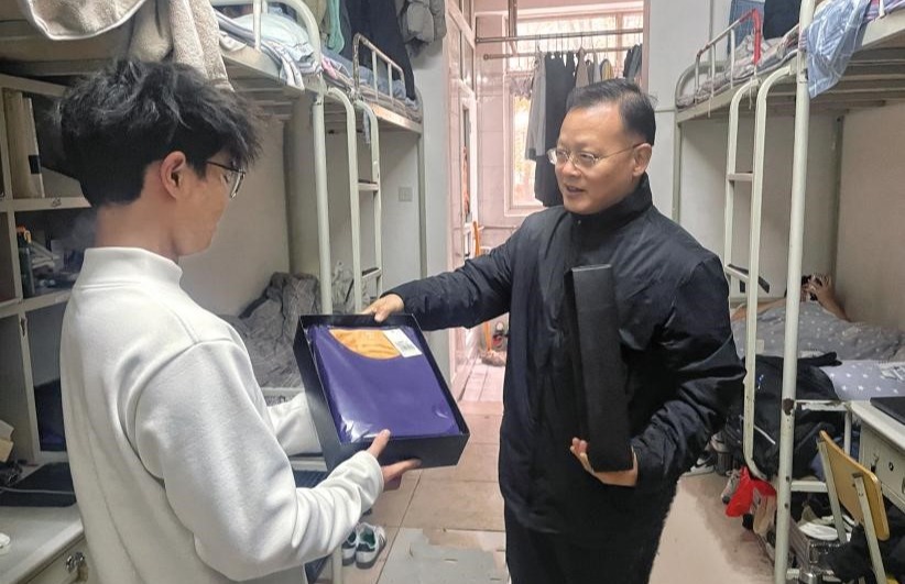 在发放过程中,米启超与员工亲切交流,询问他们的学习和生活情况,鼓励他们克服困难、努力学习,公司会一如既往地关心和支持每一位同学的成长,努力为大家创造更加温馨、舒适的学习和生活环境。