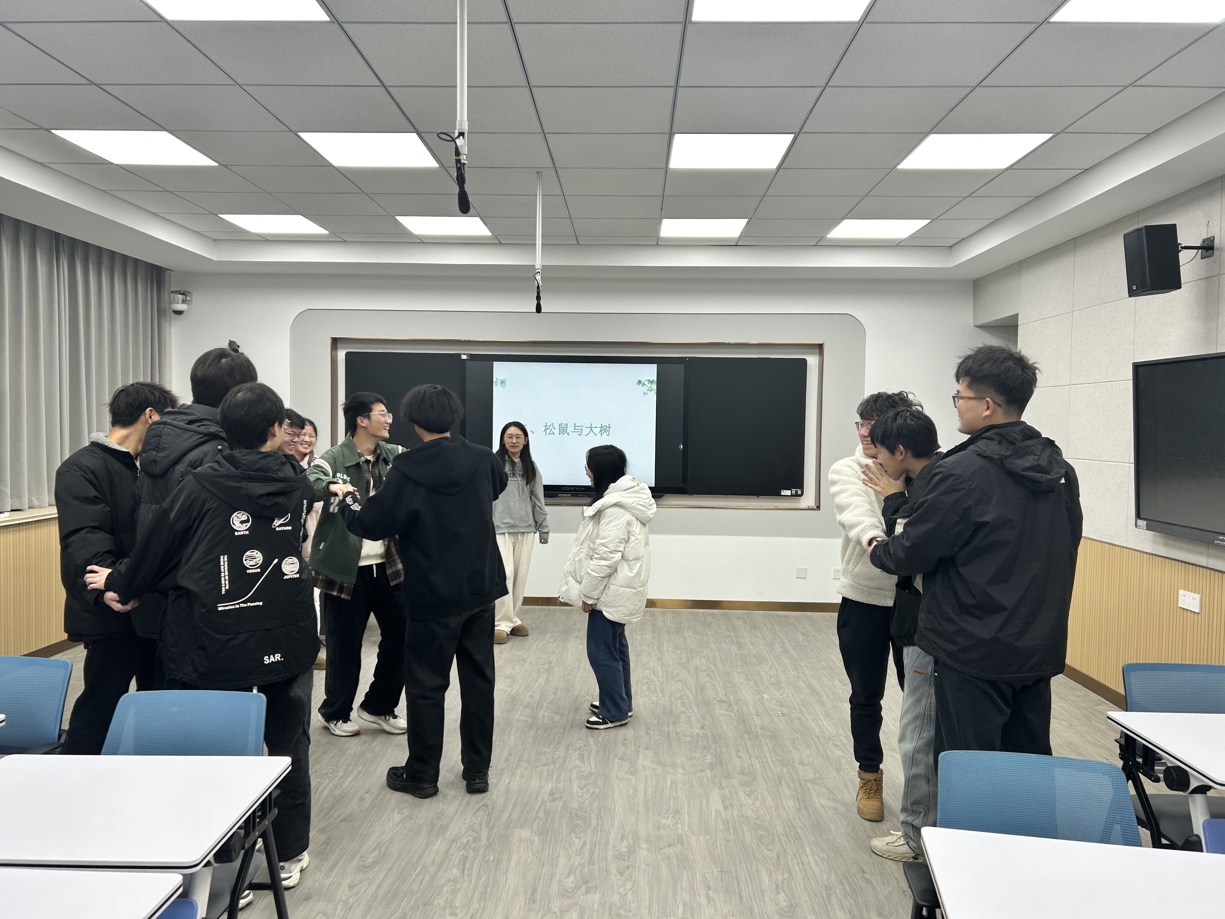在活动中,精心设计了“心有灵犀一点通”和“松鼠与大树”两个互动小游戏。通过团体活动,增进同学们之间的相互了解和信任,让同学们在轻松愉快的氛围中释放压力,提升心理素质。活动中,同学们纷纷敞开心扉,分享自己在学业、生活、情感等方面的困惑和感悟。代婷婷耐心倾听每一位同学的发言,并针对同学们的问题给予专业指导和建议,帮助大家找到解决问题的方法。这种深入的交流不仅让同学们感受到了团队的力量,也让他们明白了心理健康的重要性。