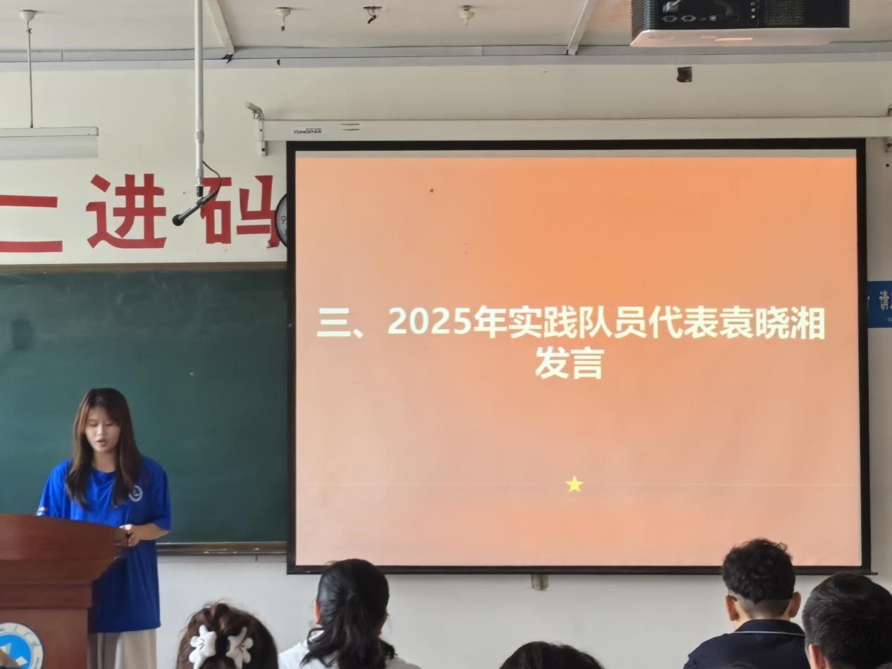 仪式在庄严的氛围中拉开帷幕,党委副书记张星致开幕辞。她寄语青年学子要深入基层,将所学知识运用到实践中,厚植家国情怀,在基层的大舞台上绽放青春光彩。队员代表袁晓湘和曹茂琦先后发言,他们分享了自己参与“三下乡”活动的初心与实践感悟,传递出强烈的青春担当,让在场的每一个人都深受鼓舞。