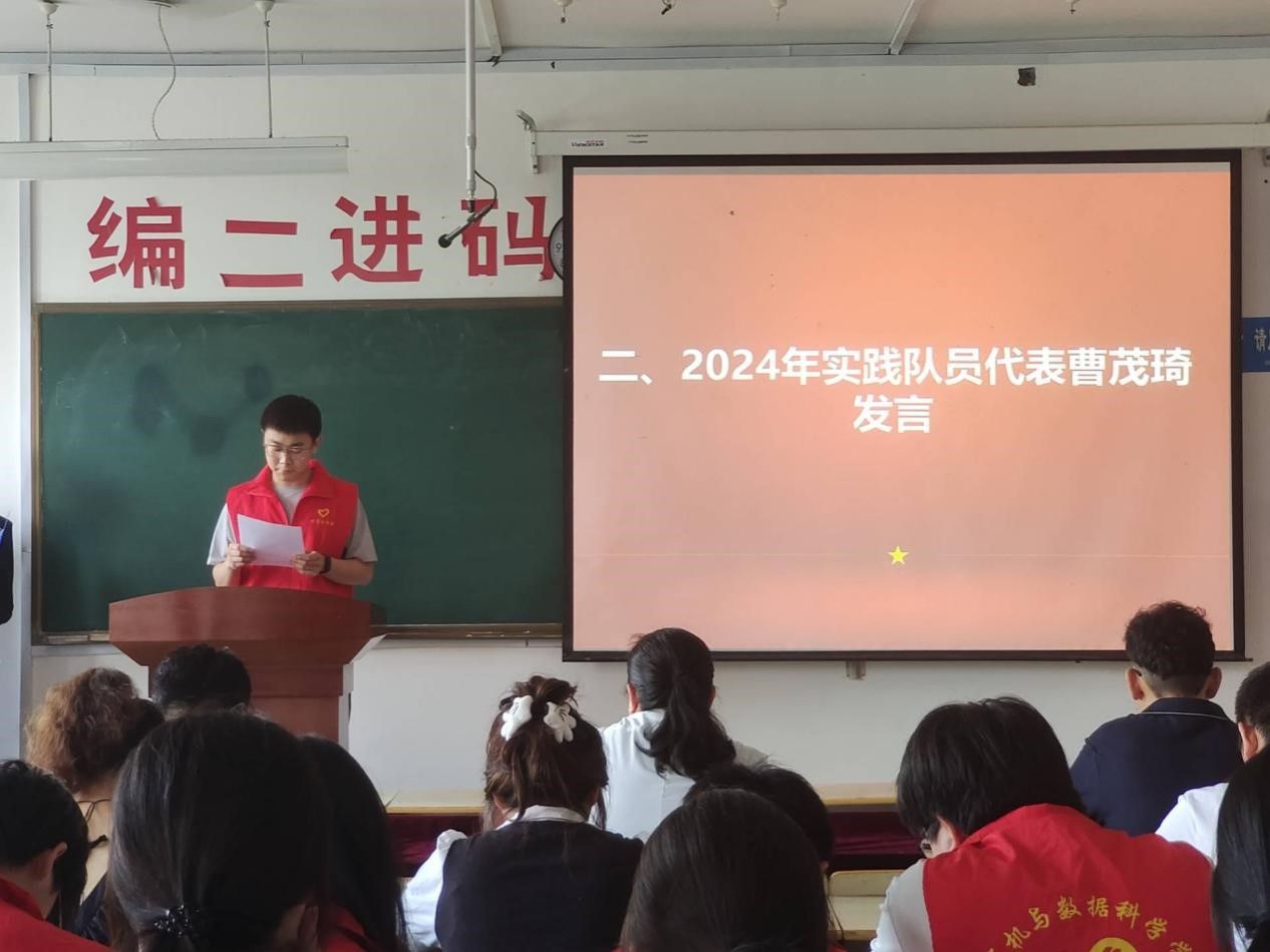 公司党委书记米启超发表总结讲话,并为实践队郑重授旗。随后,全体队员在李可心同学的带领下庄严宣誓,承诺将以行动服务社会,用汗水书写青春华章。最后,书记米启超总结强调,“旗帜是方向,更是责任”,希望队员们能牢记使命,砥砺前行。